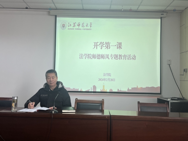 2月28日下午,法学院在16号楼602报告开展开学第一课暨师德师风专题教育大会,法学院全体教师参加本次会议。会议由学院党委书记张明新主持。