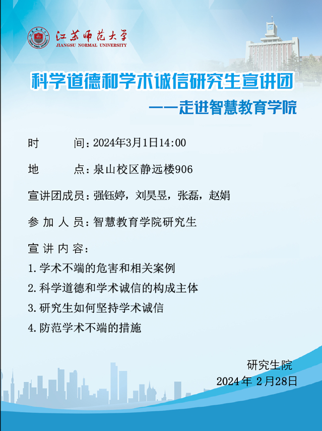 科学道德和学术诚信研究生宣讲团走进智慧教育学院