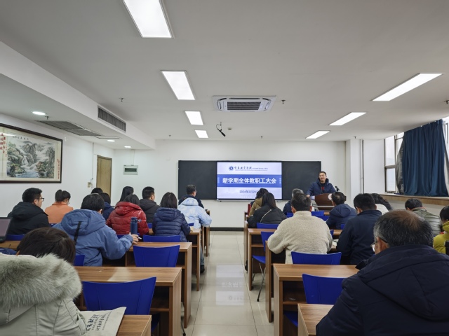 为提升新学期教职工士气,推进学院师德师风建设,2月28日下午,学院召开新学期全体教职工大会暨开学第一课教育活动,学院全体教职工参会,会议由党委书记周显洋主持。