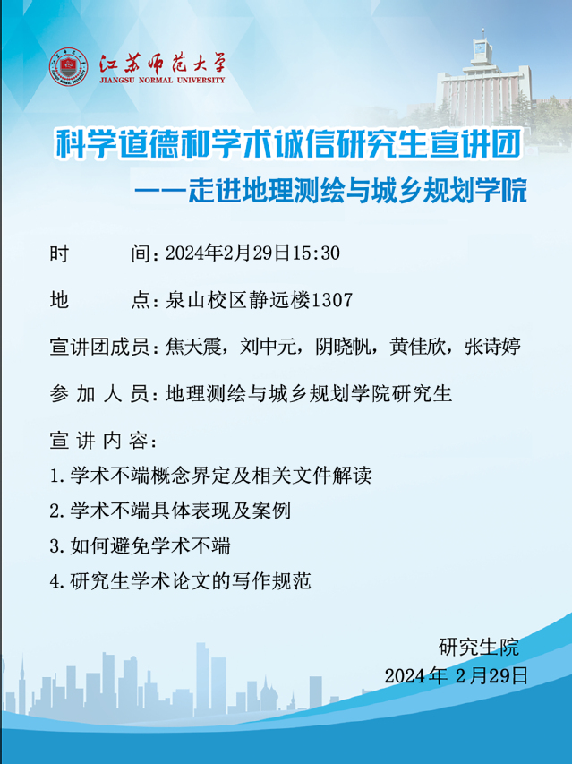 科学道德和学术诚信研究生宣讲团走进地理测绘与城乡规划学院
