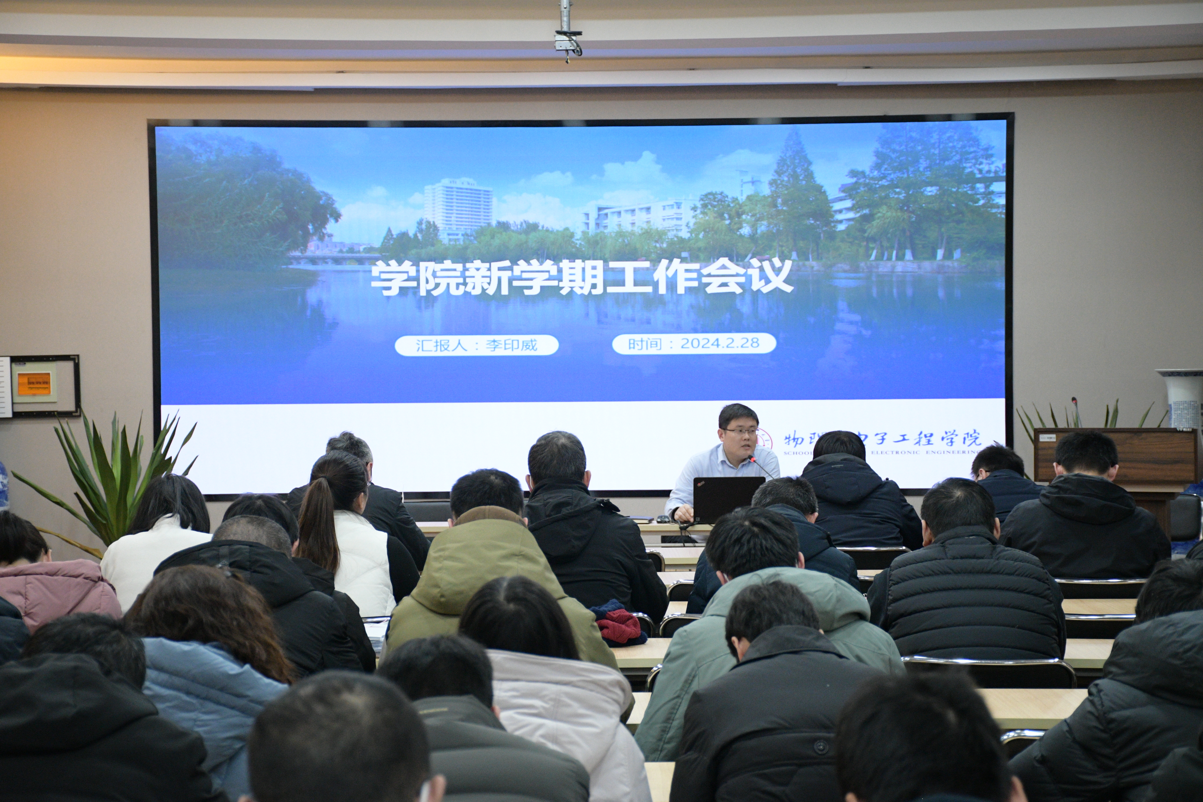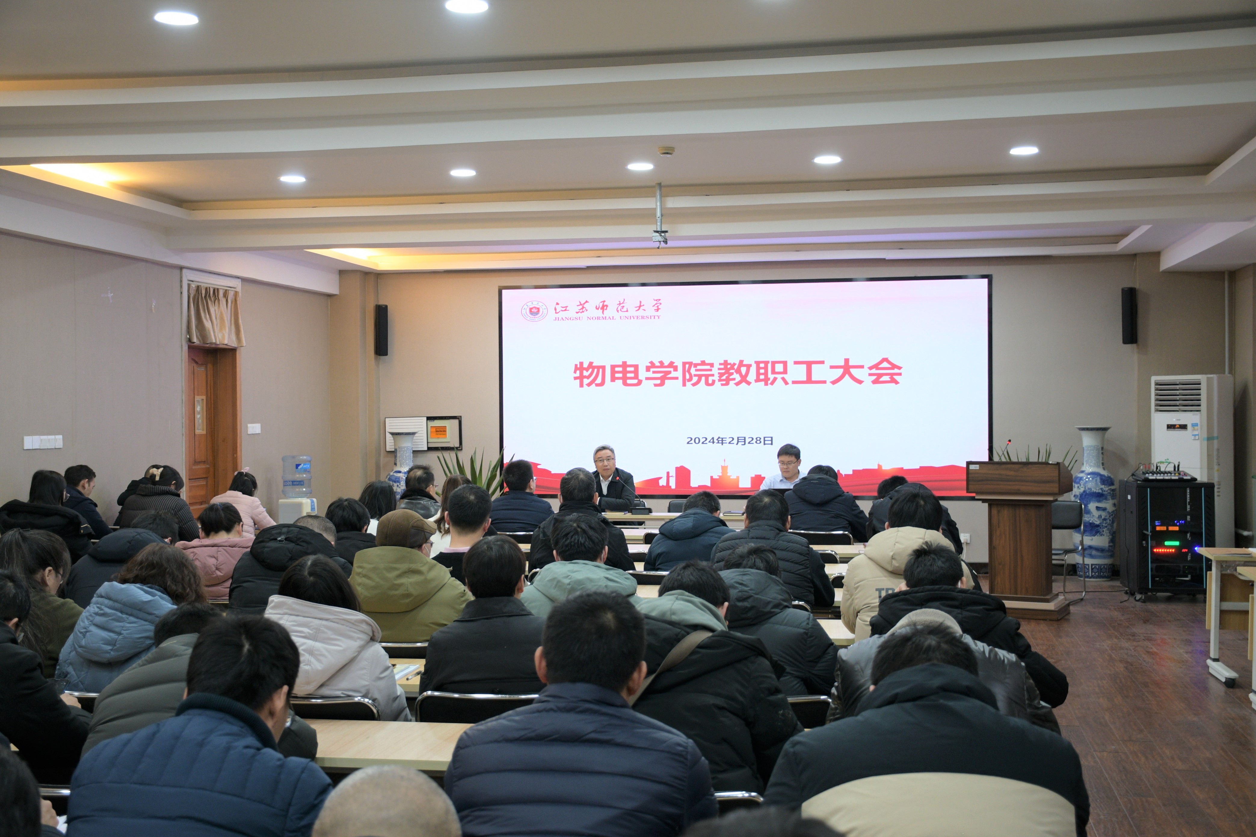 2024年2月28日下午,物电学院召开全体教职工大会,学院全体教职工参加,会议由院党委书记王夫寿主持。