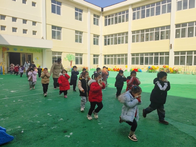 演练开始时,幼儿园通过广播发布警报,班级教师有序组织幼儿迅速撤离。各班级到达指定位置后,各班老师立即清点人数,并向保健老师李梅汇报。