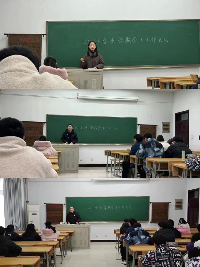 会上,各位老师就上一年度及寒假期间自己分管领域的工作情况进行了通报,肯定了学生干部在学院教育管理、党团工作中作出的努力和贡献,并就2024年度的重点工作进行了布置和提醒。