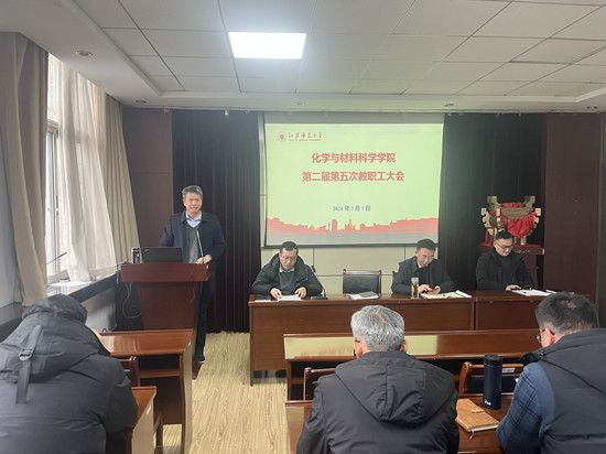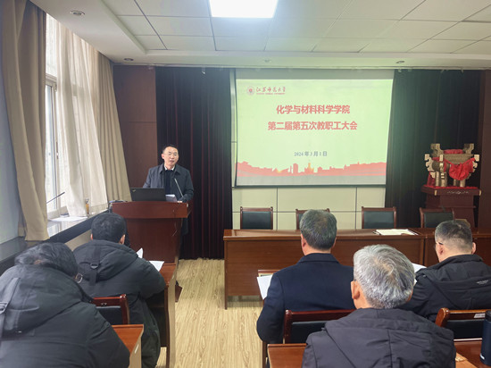 3月1日,化学与材料科学学院召开第二届第五次全体教职工大会,学院全体教职工参加了此次会议。大会审议并通过了院长工作报告和2023年度财务工作报告,院党委副书记赵玉璋主持此次会议。