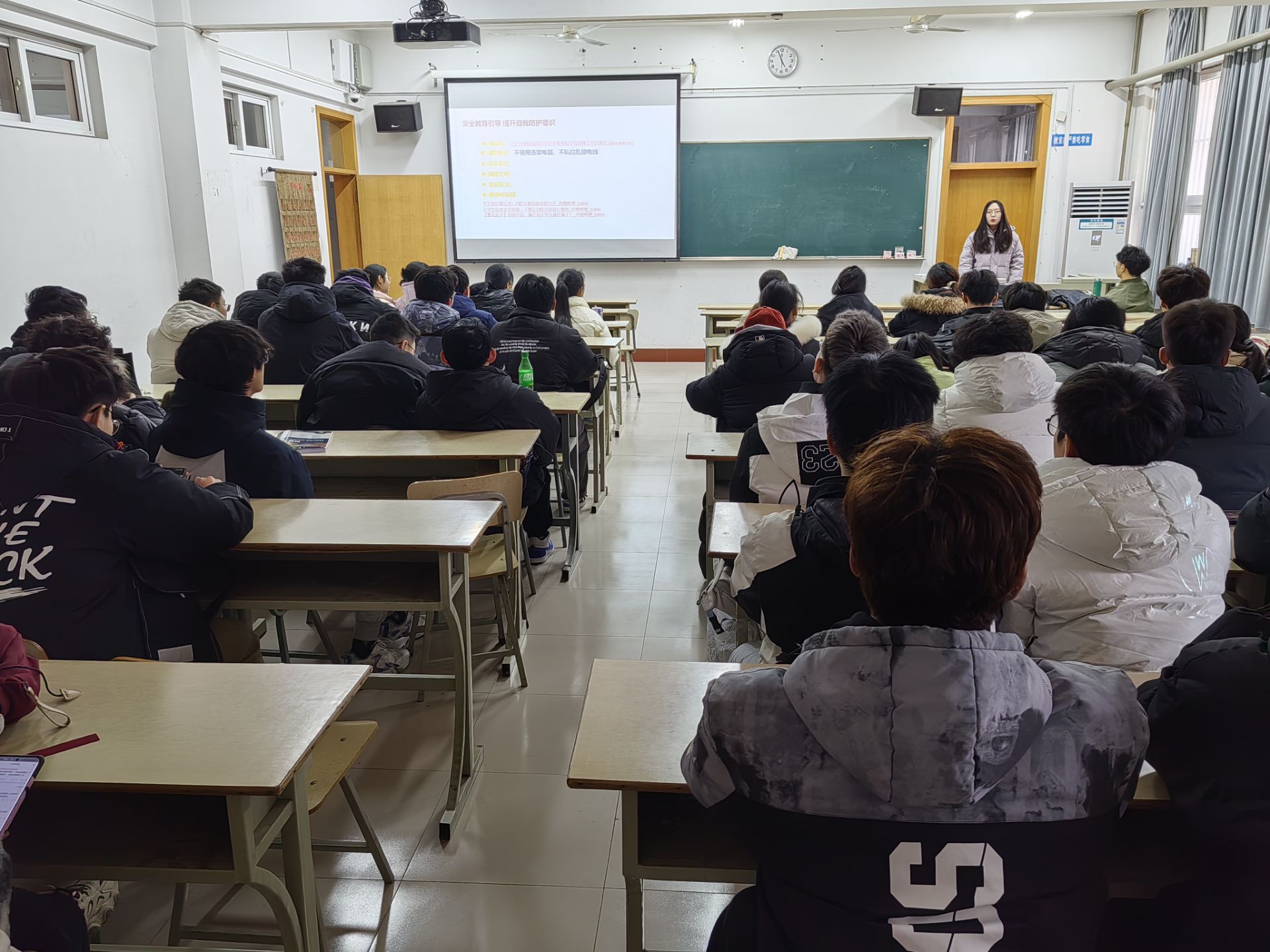 会上,赵忠琦老师首先强调了要加强安全教育,提升自我防护意识,希望同学们加强对消防安全、防诈反诈、网络文明、食品安全、春季传染病等安全知识的学习和关注,她还为大家播放火灾逃生科普视频和反诈视频,提高风险应对能力。接下来,赵老师希望同学们能够关注心理健康,护航青春成长,她为大家介绍了校内外的心理健康支持资源,希望同学们养成积极向上的健康心态。第三个板块中,赵老师对大一上学期的成绩进行了分析,对挂科的同学进行了警示,希望同学们端正学习态度,形成良好学风。此外,赵老师还就职业生涯规划和大学生恋爱心理作了分析解读。