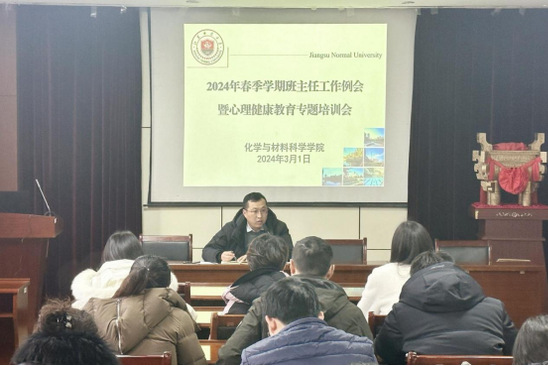 为进一步落实学校和学院各项学生教育管理工作,我院于3月1日下午在化学楼211会议室召开2024年春季学期班主任工作例会暨心理健康教育专题培训会,对新学期学生教育管理工作进行部署。学院全体辅导员及班主任参加会议,会议由院党委赵玉璋副书记主持。