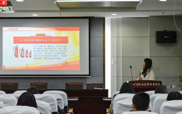 活动伊始,通过播放近期火灾案例视频,引起了同学们对消防安全的重视。接着从火灾预防的基本知识出发,详细解释了火灾的成因、类型以及灭火方法,在讲解过程中普及了灭火器的种类以及如何正确使用灭火器、消防栓等消防设备。最后介绍了救火的常识知识和火灾发生时自救和互救的方法,并强调了遇到火灾时要保持冷静,逃离火场。