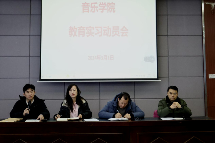 根据江苏师范大学师范生培养方案相关要求,为顺利开展2024届毕业生教育实习工作,3月1日,音乐学院2024届毕业生实习动员会在苏北报告厅召开,会议由音乐学院实习实训中心主任王矛老师主持。
