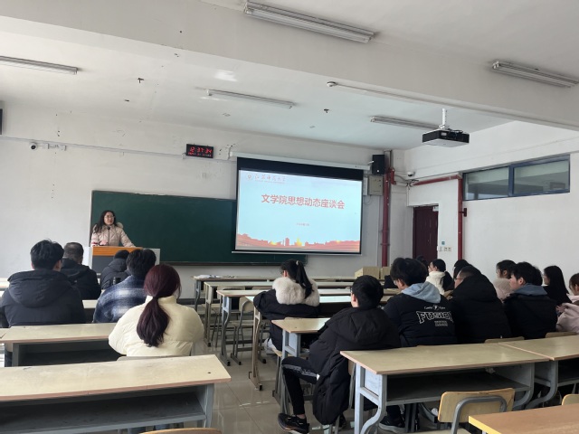 为全面掌握学生思想状况,了解同学们在学习、生活上遇到的问题,积极回应关切,3月6日下午,文学院在西教14号楼南103召开新学期本科生思想动态座谈会,会议由文学院党委副书记彭晨主持,本科生学生代表参加座谈会。