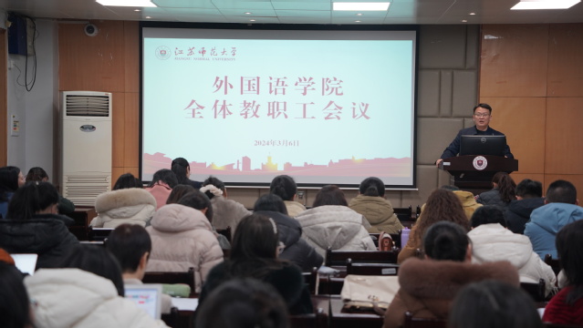 3月6日下午,外国语学院召开全体教职工大会,开展师德师风专题教育。会议由学院党委书记庄园主持。