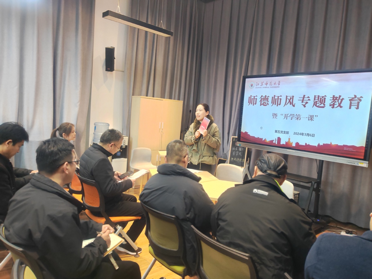 会上,陈健强书记解读了学校下发的《关于开展师德师风专题教育活动的通知》,带领全体人员集中学习了文件内容。殷茵主任带领大家学习了《江苏师范大学教师师德手册》。