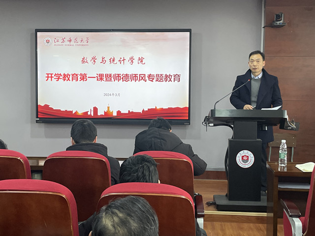 为深入贯彻落实习近平总书记关于教育的重要论述,教育引导全院教师弘扬教育家精神,落实学校把师德教育作为全体教职工“开学第一课”的要求,3月6日下午,数学与统计学院在静远楼1506报告厅组织开展开学教育第一课暨师德师风专题教育。学院领导班子成员出席,全体教职工参加会议。