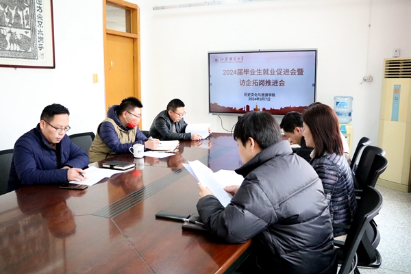 为积极促进2024届毕业生就业工作,切实抓好春季就业关键期,推进学院“访企拓岗”顺利开展,3月7日下午,历旅学院召开2024届毕业生就业促进会暨访企拓岗推进会。院领导班子全体成员、各系系主任、就业辅导员参加会议,会议由院党委副书记杜登主持。