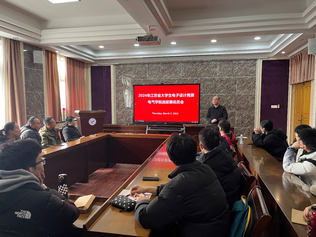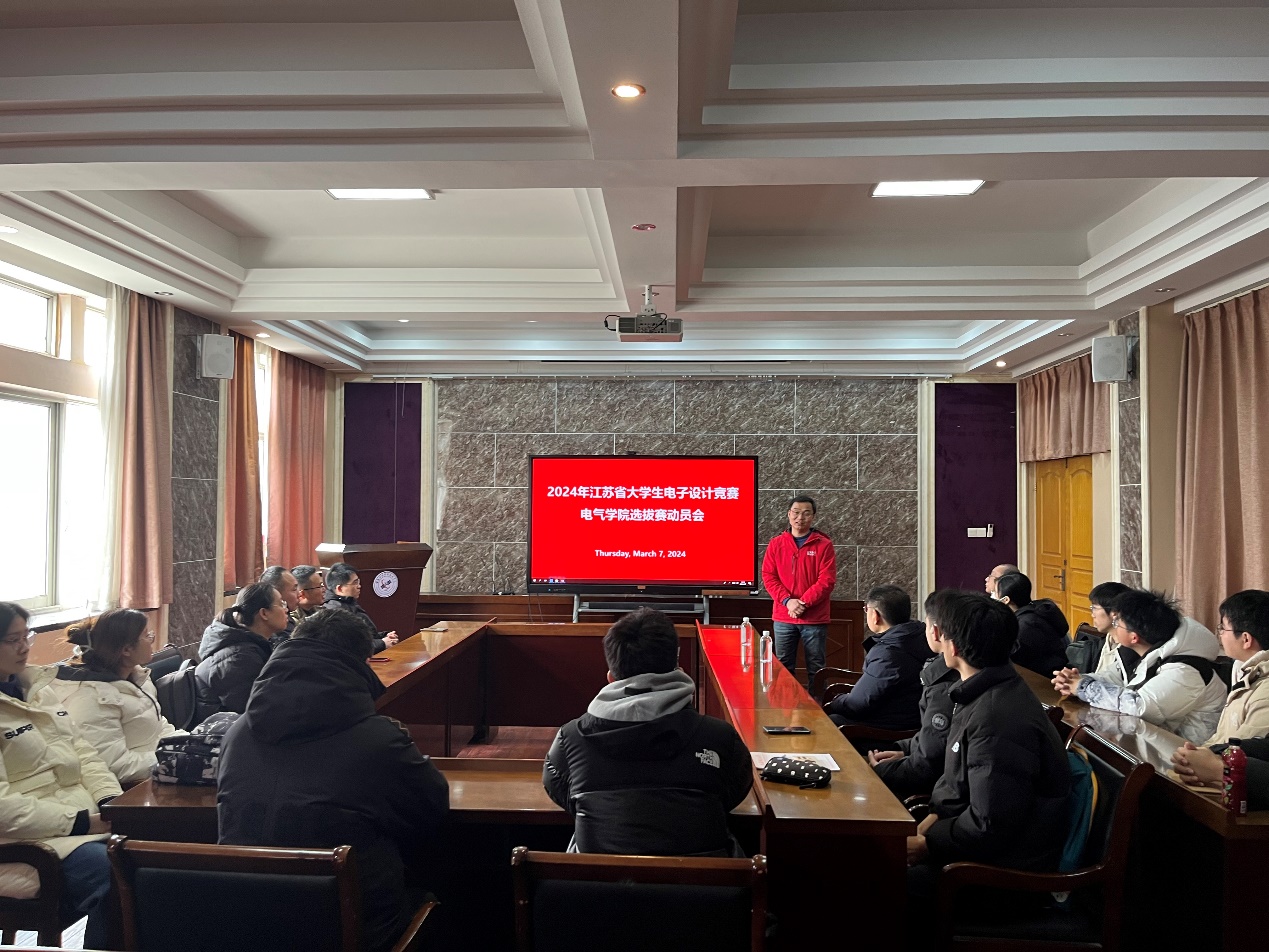 为激发大学生创新思维,提高大学生实践能力,3月7日,电气学院在12#405B 召开2024年江苏省大学生电子设计竞赛电气学院选拔赛动员会。会议由徐止政老师主持,校友江苏蒲公英无人机有限公司程义总经理,各队指导教师及参赛成员参加此次动员会。