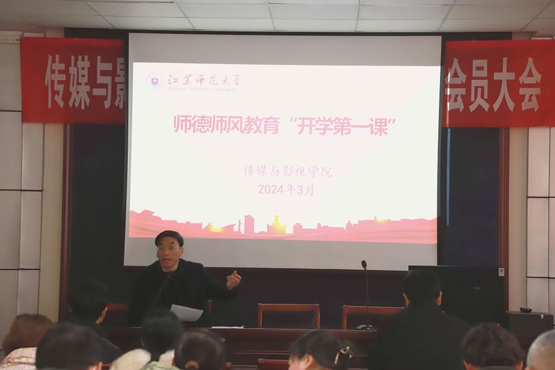 3月6日下午,传媒与影视学院在云龙校区6号楼304会议召开新学期全体教职工大会并开展师德师风教育“开学第一课”,院党委书记赵永前主持会议。