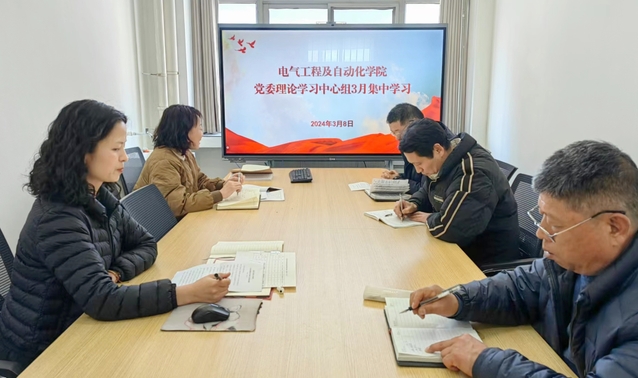 3月8日下午,电气工程及自动化学院党委理论学习中心组开展2024年3月专题学习,重点围绕《党史学习教育工作条例》进行学习研讨。院党委理论学习中心组全体成员参加学习,会议由院党委书记潘震鑫主持。