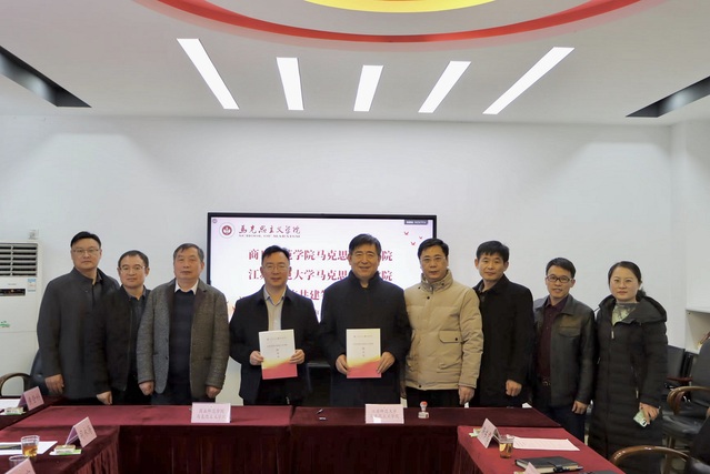 曹典顺首先对商丘师范学院马克思主义学院一行的到访表示热烈的欢迎,并从人才培养、学科建设、科研发展、师资队伍等方面介绍了学院发展的基本情况。龚志宏概括了商丘师范学院马克思主义学院与我院在教育部师范教育协同提质计划下取得的成果,对我院长期以来的大力支持表示衷心感谢。司永海简要介绍了商丘师范学院马克思主义学院的基本情况,对我院在课程建设、学院建设等方面给予的支持和帮助表示感谢。司永海表示要以此次正式合作为契机,在项目申报、青年教师深造、集体备课以及人才培养等方面加强合作,促进双方互动交流,实现“年年开新花,岁岁结硕果”。曹典顺与司永海分别代表双方签署了合作共建协议。