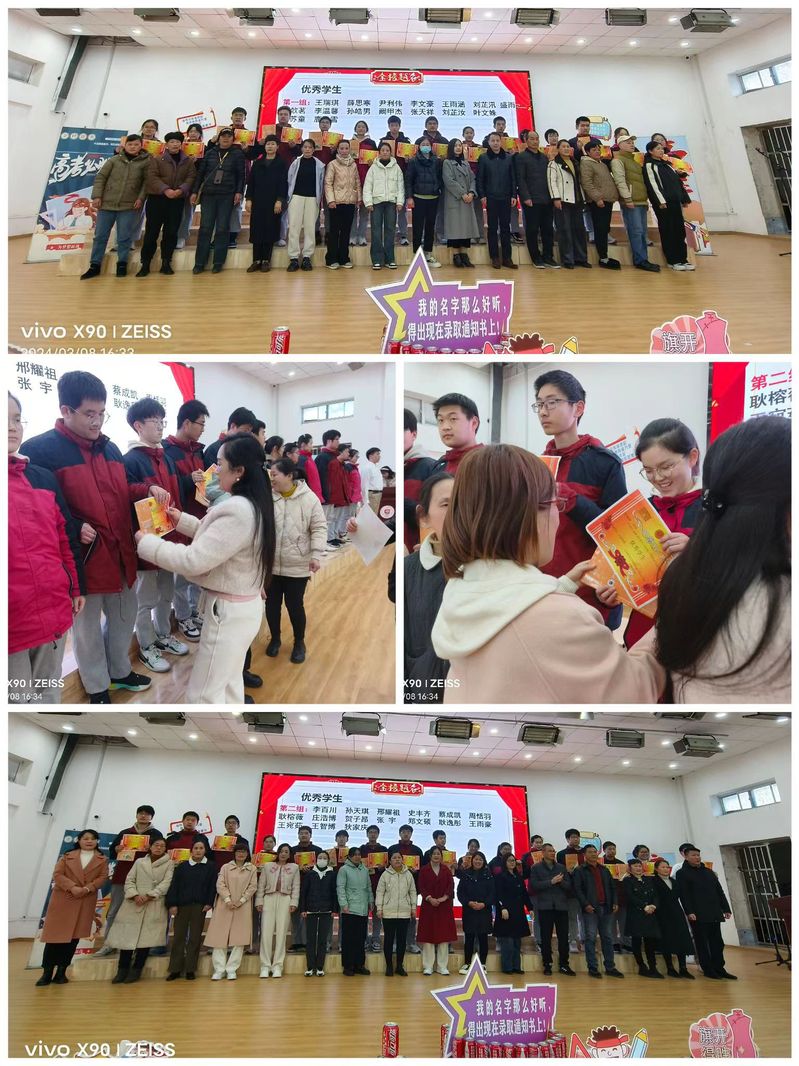 回首过去两年半的时间,高三学子一路风雨兼程,一路砥砺前行。他们用琅琅书声,唤起日出东方;他们以奋笔疾书,换取硕果飘香。在一检考试中,高三年级取得了优异的成绩,涌现出一批优秀学生和进步之星,高中部执行校长王瑞同志宣读了表彰名单并致辞。获奖同学家长纷纷上台为孩子们颁发奖状和奖品。