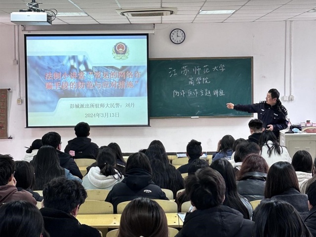 为进一步提高学生防诈骗意识与能力,不断拓宽安全教育维度、加大防诈宣传力度,商学院于3月13日在云龙校区4号楼105教室举办防诈反诈主题讲座。彭城派出所驻云龙校区民警刘丹应邀作专题辅导,商学院辅导员马瑞良主持活动,学院2023级80余名学生参加活动。