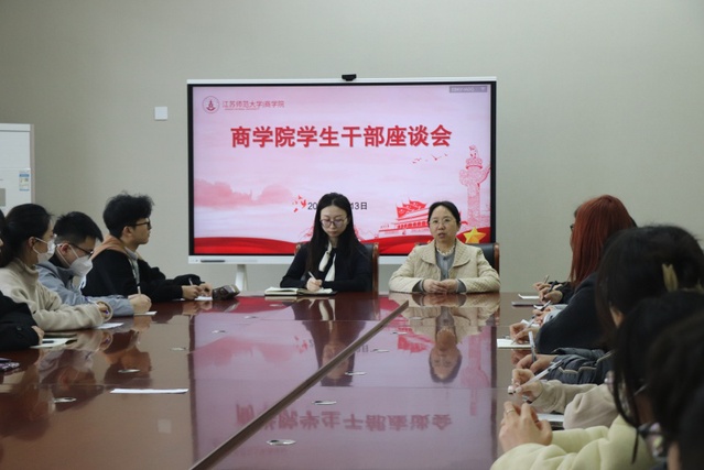 为更好的了解新学期我院学生的思想动态,收集同学们对学院学生教育和管理工作的意见建议,切实做好新学期学生教育管理工作,促进各项工作尽快步入正轨,近期,商学院采用寝室走访、学生干部座谈会等形式组织开本科生展思想动态调研工作。商学院党委副书记吴夏蓉、团委书记鲍春晓、辅导员李雪晴分批次召开了学生干部座谈会。