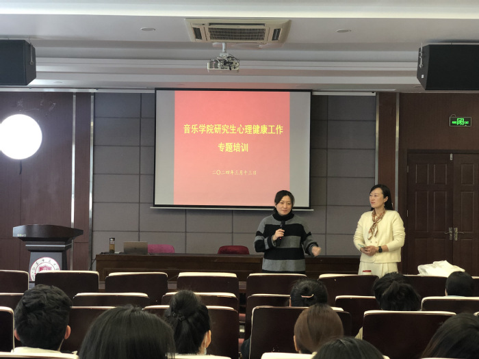 为进一步加强学生心理健康教育工作的针对性和实效性、强化心理健康教育队伍建设、提升教师心理健康教育能力、分类分阶段做好学生的关怀帮扶,音乐学院于3月13日下午举办了“润心赋能·逐光同行”心理健康专题讲座。本次讲座邀请到校学生工作处副处长、心理健康教育中心主任石岭担任主讲嘉宾。学院全体党政领导班子成员、研究生导师以及全体班主任和辅导员参加培训,会议由党委副书记夏雯主持。