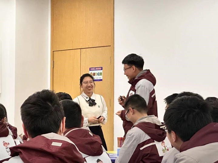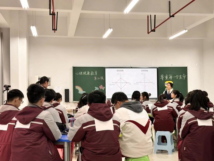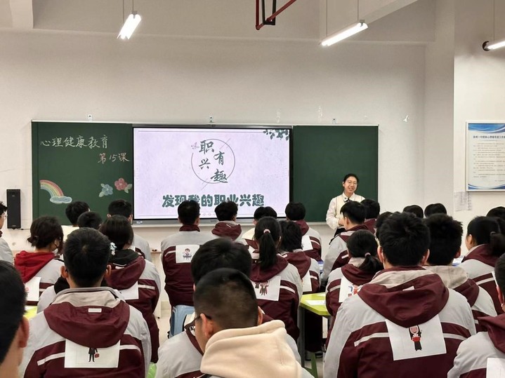 首先,师大师生一行观摩了21级应用心理专业本科生马雯婷和刘佳申的心理健康教育课,他们分别围绕“发现我的职业兴趣”和“尊重每一个生命”主题,以徐州市第一中学高二年级学生为对象开展进行授课。马雯婷同学从寻找职业兴趣、探索优势能力和兴趣能力的完美结合三方面展开授课。在寻找职业兴趣环节,通过职业幻游,让高中生尝试寻找自己感兴趣的职业,随后通过自我评估和他人评估探索自我的优势能力,并结合职业坐标探索职业兴趣与能力的匹配。