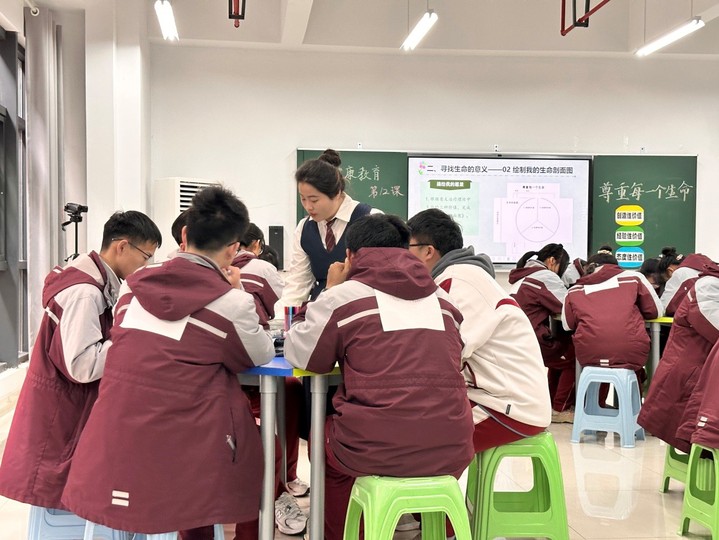 刘佳申同学从“探索生命态度”到“寻找生命意义”,再到“提升生命质量”,带领高二学生开展了一场生命之旅。课堂上,同学们积极发现生命的态度,领悟生命的意义,绘制了生命剖面图和生命质量坐标轴,在头脑风暴中探索提升生命质量的方法。最后,启发学生思考,地球上大到动植物,小到微生物,每一段生命旅程都是奇妙也不易的,我们应该尊重且珍爱每一个生命。