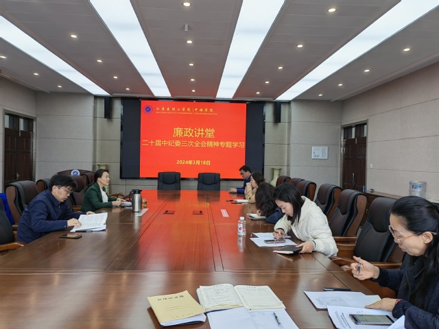 3月18日上午,江苏圣理工学院-中俄学院党委理论学习中心组在学院525会议室开展了“廉政讲堂”暨2024年度第二次专题理论学习。本次学习由党委书记尹燕萍主持,党委委员、领导班子成员参加。