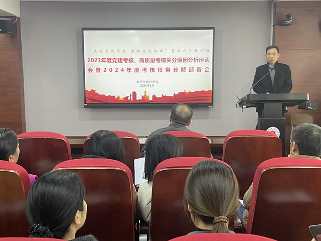 3月18日上午,学院举办了培训班开班仪式暨第一讲“2023年度党建考核、高质量考核失分原因分析暨2024年度考核任务分解部署会”,持续全面强化对年度综合考核的安排部署,全面查找2023年度存在问题和不足,进一步明确节点、压实责任、细化举措,确保2024年考核稳中有进。学院领导班子、全体行政工作人员参加。