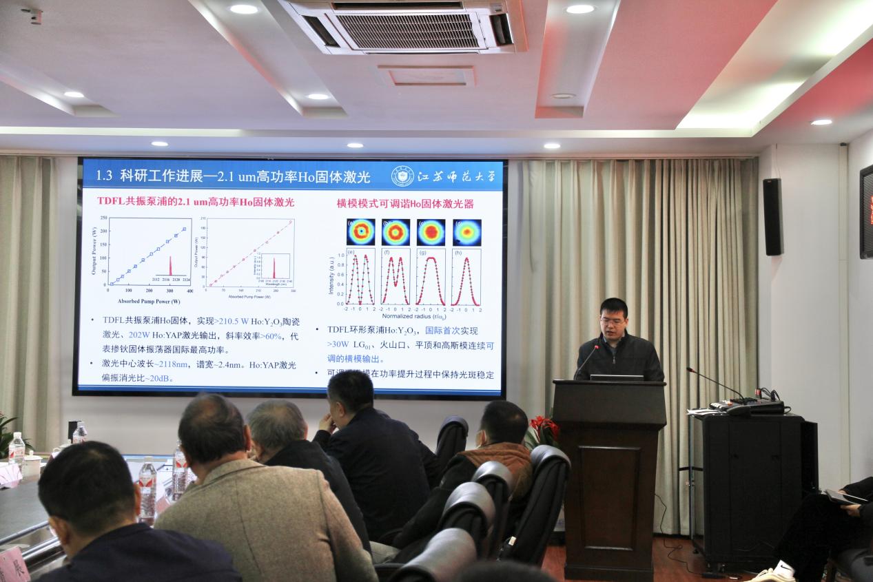 2024年3月16日上午,江苏省先进激光材料与器件重点实验室2023年度学术委员会会议在江苏师范大学物电学院428会议室召开。出席会议的专家有:中国科学院上海光学精密机械研究所范滇元院士、中国工程物理研究院上海激光等离子体研究所隋展研究员、上海交通大学钱列加教授、中国科学院物理研究所魏志义研究员、山东大学张怀金教授、华东师范大学程亚教授、深圳技术大学唐定远教授、江苏师范大学沈德元教授和杨志勇教授。校党委书记方忠教授、科学技术研究院院长马晓冬教授出席会议,物电学院和重点实验室相关人员参加会议。会议由学术委员会主任范滇元院士主持。