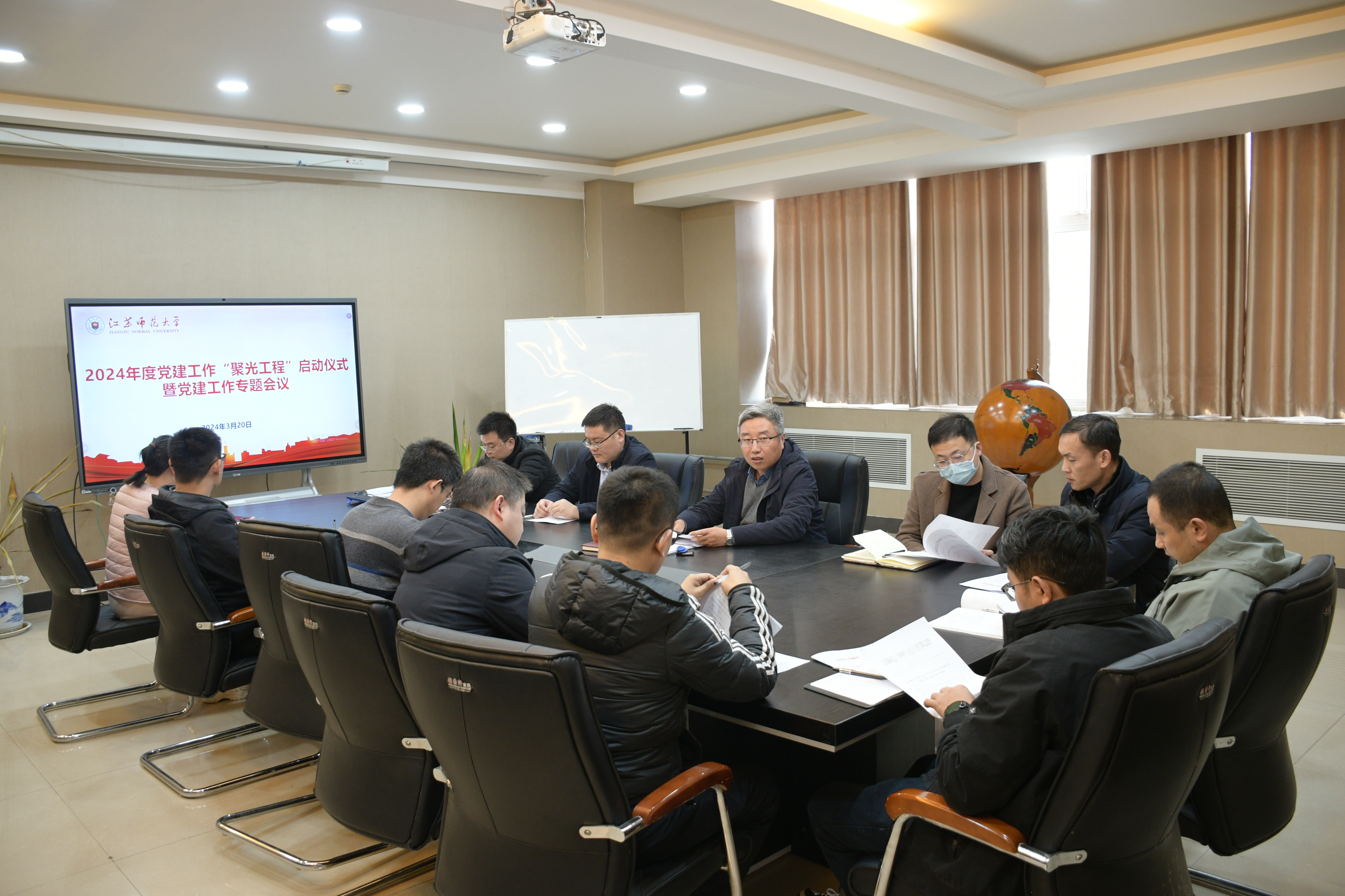 3月20日下午,物电学院召开2024年党建工作“聚光工程”启动仪式暨党建工作专题会议,学院领导班子全体成员、各基层党支部书记和聚光工程各项行动负责人参加会议。会议由院党委书记王夫寿主持。
