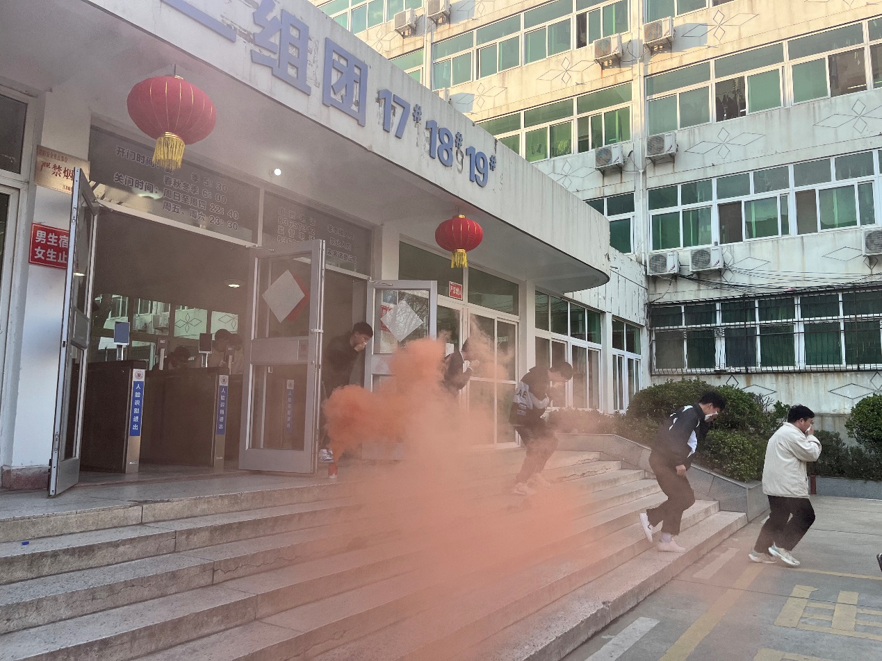3月14日下午,学院组织学生进行消防疏散逃生演练。校保卫处工作人员介绍了学生宿舍的布局特点,讲解了火场逃生的正确路线。随着警报的响起,全体参演人员立刻进入应急状态,楼内各疏散口、楼梯口等重点区域的引导员迅速就位,引导学生使用湿毛巾等捂住口鼻,弯腰低姿态沿疏散标识所示方向有序完成疏散。