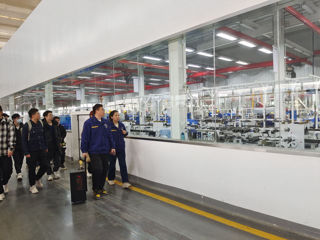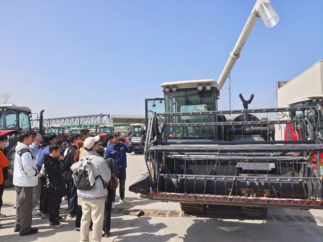 在工作人员的带领下,师生一行走进徐工农机生产车间,参观核心零部件和部分产品装配线,实地感受徐工农机标准化管理与智能化生产。在调试现场,同学们实地观看体验动力机械与收获机械的智能操作。