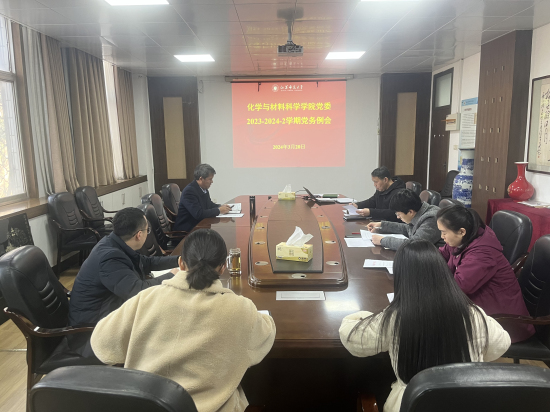 3月20日下午,化学与材料科学学院党委在化学楼209会议室召开2023-2024-2学期第一次党务例会。学院党委书记王香善、副书记赵玉璋、全体支部书记参加了此次会议。会议由王香善书记主持。