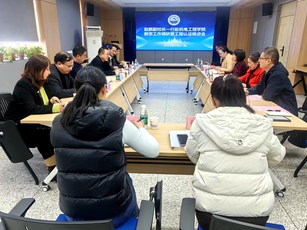 3月21日下午,赵鹏副校长及教务部相关负责人在机电工程学院开展教育教学工作调研暨工程认证现场推进会。学院领导班子及相关秘书参会,会议由院党委书记何莉娜主持。