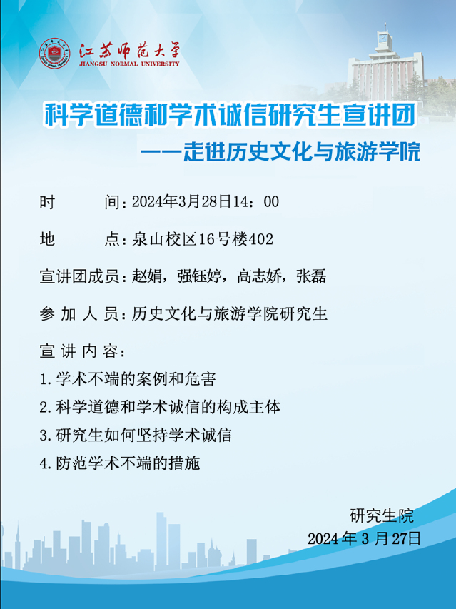 科学道德和学术诚信研究生宣讲团走进历史文化与旅游学院