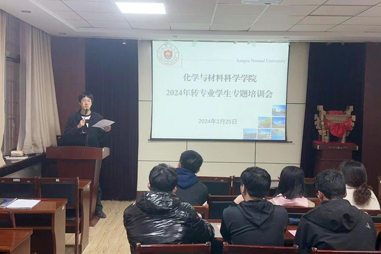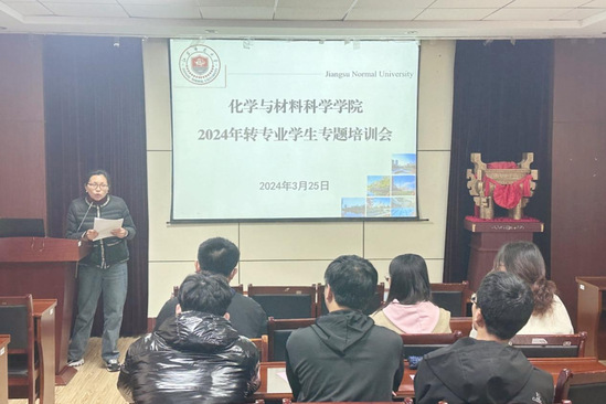 为进一步加强转专业同学的教育管理,帮助其尽快适应新环境,积极投入到新专业的学习当中,3月25日下午,我院在化学楼211会议室集中召开转专业学生专题培训会。学院实验室安全员付荣老师、教务秘书夏建萍老师、全体辅导员以及新转入的21名同学参加。会议由学院党委赵玉璋副书记主持。
