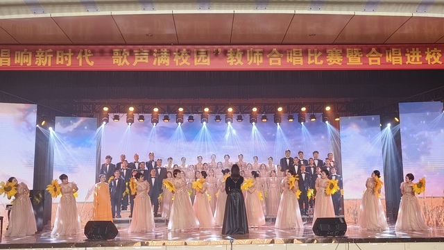 决赛现场,合唱队教师们着装整齐、精神饱满、歌声嘹亮,深情的演绎给观众带了一场视听盛宴。