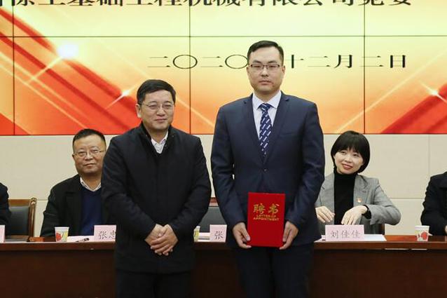 张农副校长为“全国技术能手”、“国务院特殊津贴”、“江苏工匠”荣誉称号获得者,徐州徐工基础工程机械有限公司地连墙机械厂厂长吴东同志颁发“校外育人导师”聘书。
