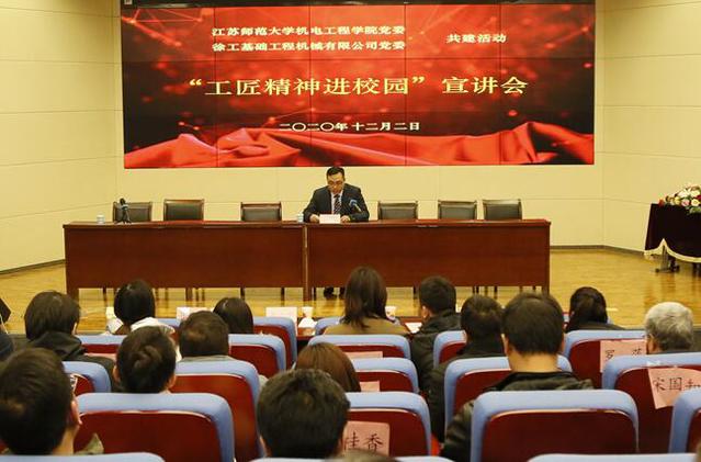 12月2日下午,机电工程学院党委与徐州徐工基础工程机械有限公司党委共建启动仪式在泉山校区13号楼报告厅举行。江苏师范大学副校长张农,徐州徐工基础工程机械有限公司党委副书记刘佳佳、副总经理张忠海,机电工程学院党委书记何莉娜、院长邢邦圣、原党委书记刘福义出席仪式并在主席台就坐。徐州徐工基础工程机械有限公司相关部门领导,机电工程学院领导班子成员及全体师生党员、教工代表参加活动。共建启动仪式由机电工程学院党委副书记陈晓林主持。