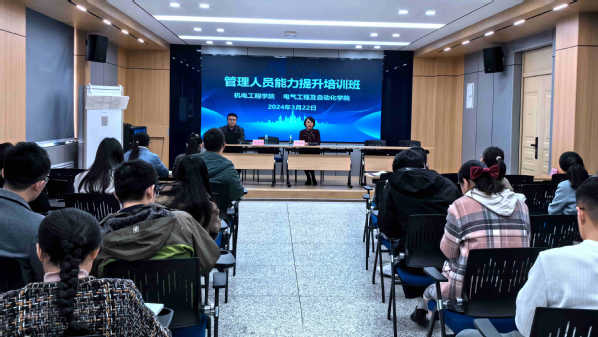 为进一步加强学院管理人员的业务能力,提升服务效能,机电工程学院、电气工程及自动化学院联合举办了管理能力提升培训班。学院秘书、系主任、支部书记及新媒体中心同学参加了培训。