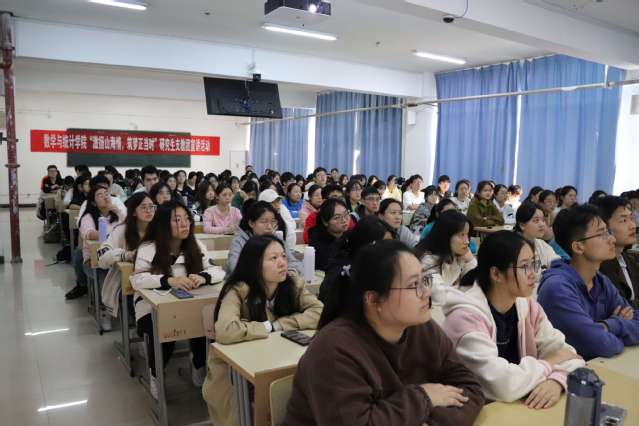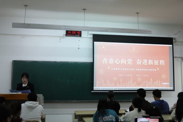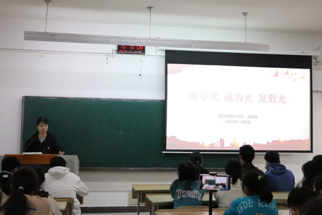 文化是一个民族的精神谱系与价值元点,是一个民族继往开来、繁荣昌盛之本。为了使青年学生深刻理解习近平文化思想的内涵,增强党性修养,不断提高政治觉悟和思想认识,数学与统计学院团委于11月8日举办“青春心向党奋进新征程”基层理论宣讲活动。本次宣讲活动由数学与统计学院助理辅导员王舒娜老师主讲,参加人员有数学与统计学院学生党员代表、学生团干部代表和学生团员共计一百三十余人。
