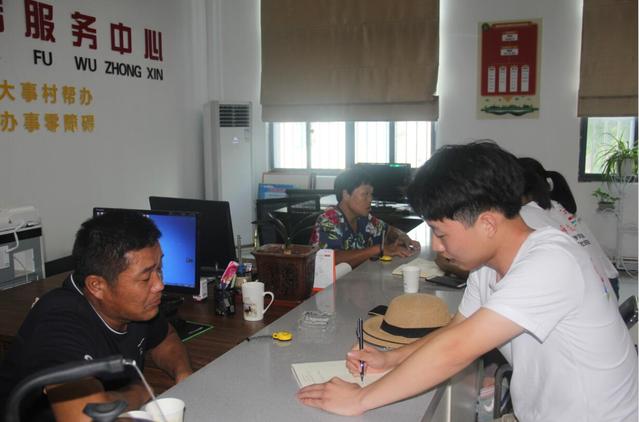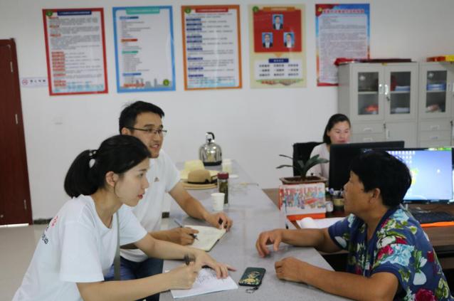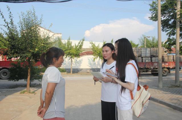 实践团队成员在村综合服务中心对潘楼村党总支副书记侯希美、村支部委员吴远远进行了访谈,团队成员从潘楼村发展的历史沿革、村级经济发展、环卫基础设施建设、基层党组织作用发挥、潘楼未来发展等进行了全面的了解沟通。在介绍精神文明建设时,侯希美副书记详细介绍了潘楼村坚持了20年的十星级文明户评选活动,这一活动用文明塑造人,提升村民整体素质,成了潘楼全村人离不开的一件大事。村级志愿服务工作是潘楼的特色工作之一,潘楼村组织成立了一支“青年爱心志愿服务队”,志愿者从起初的6人发展到现在的35人,志愿者每月固定开展活动,有效解决了老年人、留守儿童等困难群体生活难题。