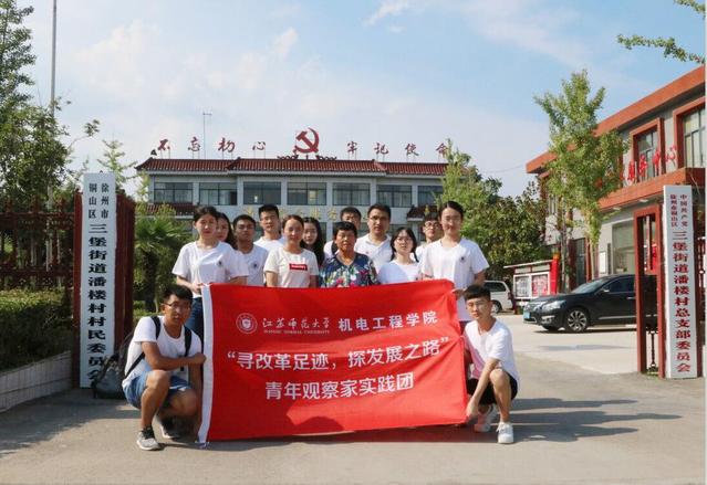 为增进大学生对社会的观察和了解,感受改革开放四十周年来乡村社会发展,7月15日,江苏师范大学机电工程学院“寻改革足迹,探发展之路”青年观察家实践团前往全国文明村铜山区潘楼村开展新农村发展实践调研。