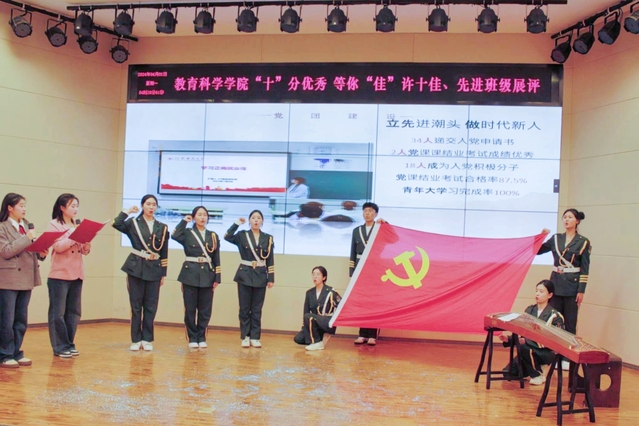 参评班级聚焦思想引领,注重理论素养提升,培养了一批优秀团员、入党积极分子,不断充实学生党员和学生骨干队伍;有的班级注重技能提升,在各大赛事上崭露锋芒;有的班级专注学术研究,发表多篇专业论文;还有很多同学躬身社会实践,积极参与志愿服务活动……各参评班级结合实际,自主选择展评形式,以朗诵、舞蹈、情景剧等多种方式突出班级特色,展现班级风貌,体现了教科学子热爱学习、坚守理想、乐于奉献的价值追求。