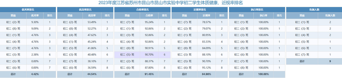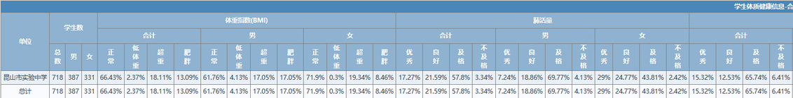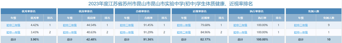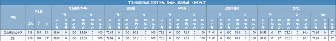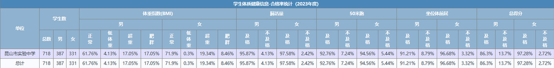 昆山市实验中学2023年体质健康测试公示