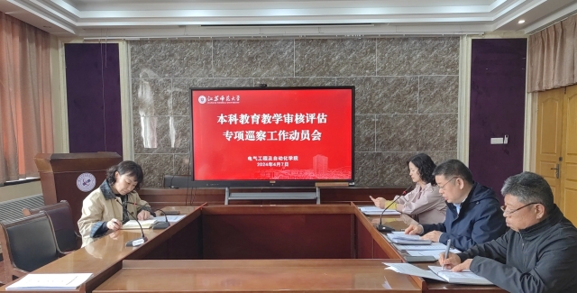 4月7日下午,电气学院召开本科教育教学审核评估专项巡察工作动员会,全体教职工参加会议,会议由院党委书记潘震鑫主持。