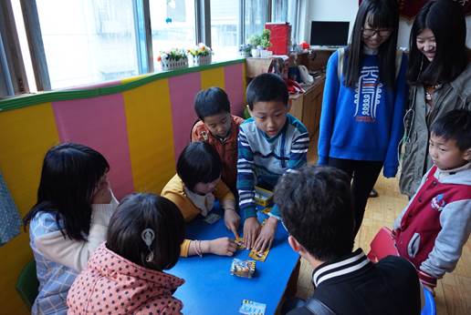 活动期间,志愿者们在康复中心老师的指导下,分成几个小组,照顾并陪伴孩子们完成各种小游戏。康复中心的老师表示,平时的训练能使孩子们学习到生活基本技能,调节心理状态,从而促进孩子们的健康成长。孩子们虽然性格孤僻,不爱与人交流,但在志愿者们不懈的沟通后也敞开心扉。活动接近结尾时,孩子们都露出了灿烂的笑脸,志愿者们对孩子们也很留恋。最后,志愿者和康复中心的孩子们合照留念。