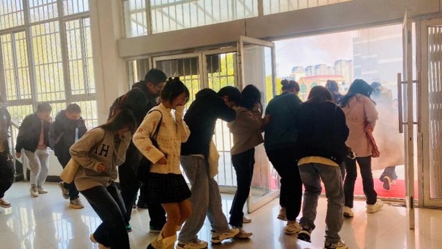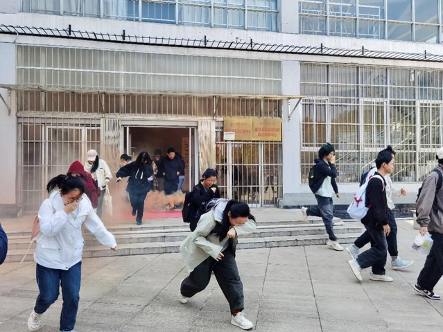 演练前,保卫处消防科科长对参加演练的全体成员进行了消防安全理论知识培训,并现场讲解了校园火灾发生的逃生技巧。随后,全体人员按照操作规程,上报火情,维护秩序,组织人员疏散,达到了预期演练效果。