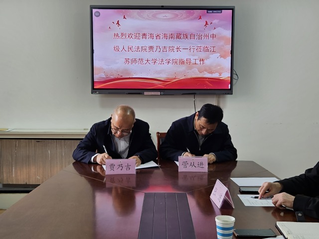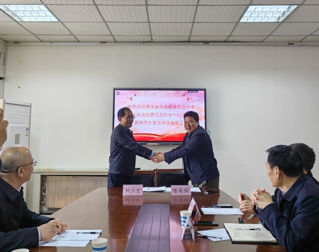 2024年4月13日,在江苏省高级人民法院和徐州市中级人民法院相关部门和领导的陪同下,青海省海南藏族自治州中级人民法院党组书记、院长贾乃吉,办公室主任纳玉宏、政治部副主任力太才让一行到江苏师范大学法学院和江苏师范大学汉藏法律文化与法治战略研究中心访问交流。